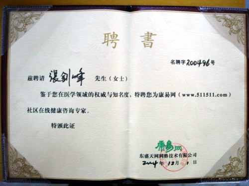 張劍鋒醫師被康易網社區聘為在線健康咨詢專家