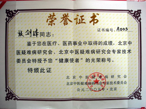 張劍鋒醫師被授予“健康使者”光榮稱號