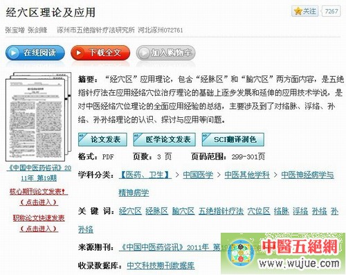 “經(jīng)穴區(qū)理論及應(yīng)用”論文載入維普網(wǎng)資源庫