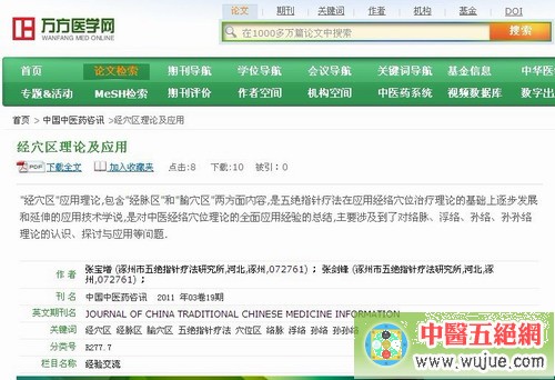 “經(jīng)穴區(qū)理論及應(yīng)用”在萬(wàn)方醫(yī)學(xué)網(wǎng)檢索結(jié)果