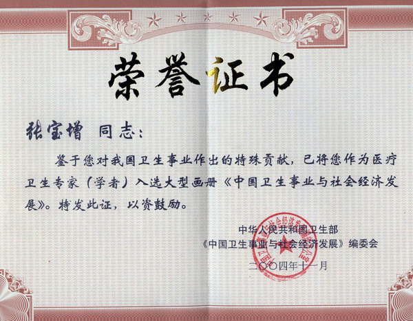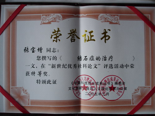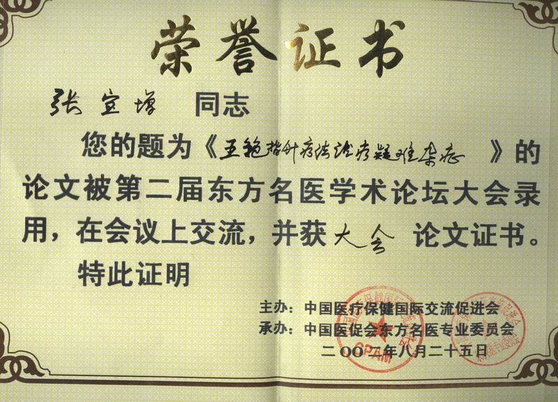 張寶增醫師所獲榮譽證書及論文獲獎證書