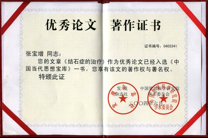 [結石癥成果]五絕指針療法治療結石癥鑒定意見 09-18