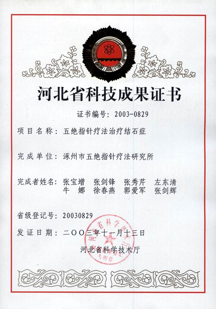 [結石癥成果]五絕指針療法治療結石癥鑒定意見 09-18