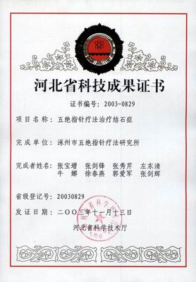 [結石癥成果]五絕指針療法治療結石癥鑒定意見 09-18